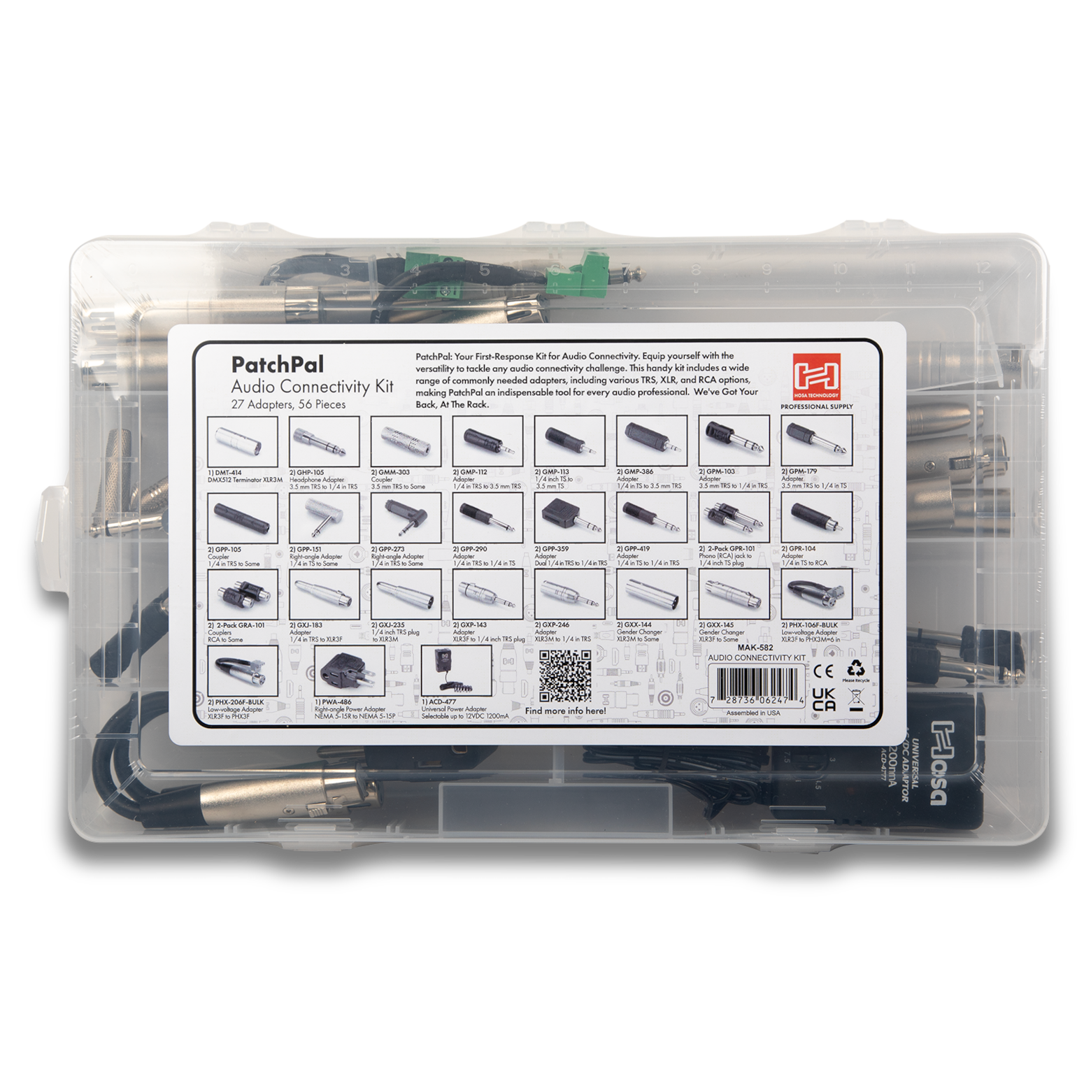 Every AV and audio professional knows that time is money, and compatibility issues can derail a project. The PatchPal kit is meticulously curated to provide the most essential and frequently used adapters, couplers, and specialty solutions, all in one organized package. From XLR to TRS interconnects for precise signal transfer to versatile adapters that solve any connectivity challenge, this kit has you covered.