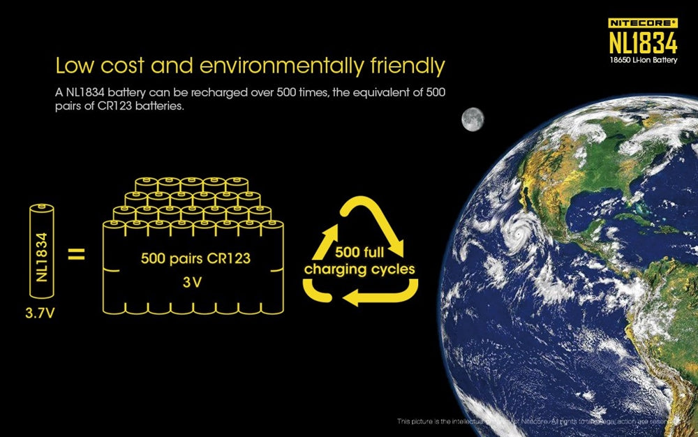 High performance rechargeable battery from Nitecore specially designed for high drain devices like Nitecore TM series and other high power LED search light and tactical flashlights.