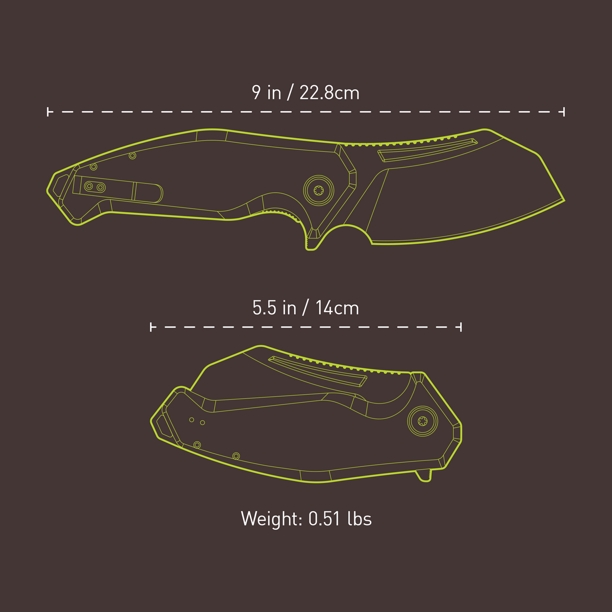 The MAAR™ knife epitomizes TRUE’s call to “Take a Firm Grip” by providing the every-day carry enthusiast with an assertive, bold and uncompromising design that succeeds where small, minimalist knives fall short. It is an oversized, yet pocketable knife that boasts heft, strength, and full grip ergonomics in a responsive, flipper design. The shape of the blade spine and handle scale is a nod to its namesake, the volcanic crater-like maar landform produced by Mother Nature’s intense heat and strength. The knife features tough D2 steel that holds a sharp edge and requires less frequent sharpening. The black oxide coating enhances the corrosion resistance and the stonewash finish provides a matte look that hides scratches and is low maintenance. The modified cleaver blade is designed to excel at cutting, slicing and chopping, yet it has as modified point for piercing that traditional cleavers lack. The broad 3.5” edge works great for common slicing tasks and the belly of the blade has a rocker design allowing it to easily rock and chop. Whether you choose the MAAR for everyday carry (EDC), general utility uses or for personal-defense applications, you’ll appreciate the versatility and the knife envy it is sure to generate as you confidently cut, slide, and chop your way through daily tasks.